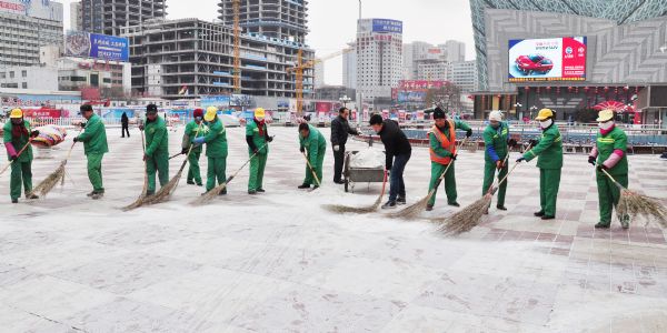 雖然雪下的不大,但氣溫驟降、風(fēng)雪交加還是給掃雪人員帶來(lái)了諸多不便,可這沒(méi)有影響各項目部團隊清理積雪的熱情,在項目經(jīng)理的帶領(lǐng)下,各班組成員對自己主管的片區進(jìn)行認真清掃,確保能夠在業(yè)主上班前讓各主干路內的行人及車(chē)輛暢通無(wú)阻,把下雪帶來(lái)的影響降至最低。