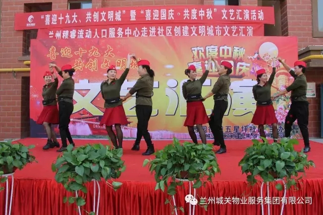 為了迎接黨的十九大勝利召開(kāi),積極配合創(chuàng )建全國文明城市工作的開(kāi)展,豐富業(yè)主的文化生活,在“雙節”來(lái)臨之際,城關(guān)物業(yè)服務(wù)集團中石油項目部聯(lián)合五星坪社區共同舉辦了“喜迎十九大”文藝匯演。