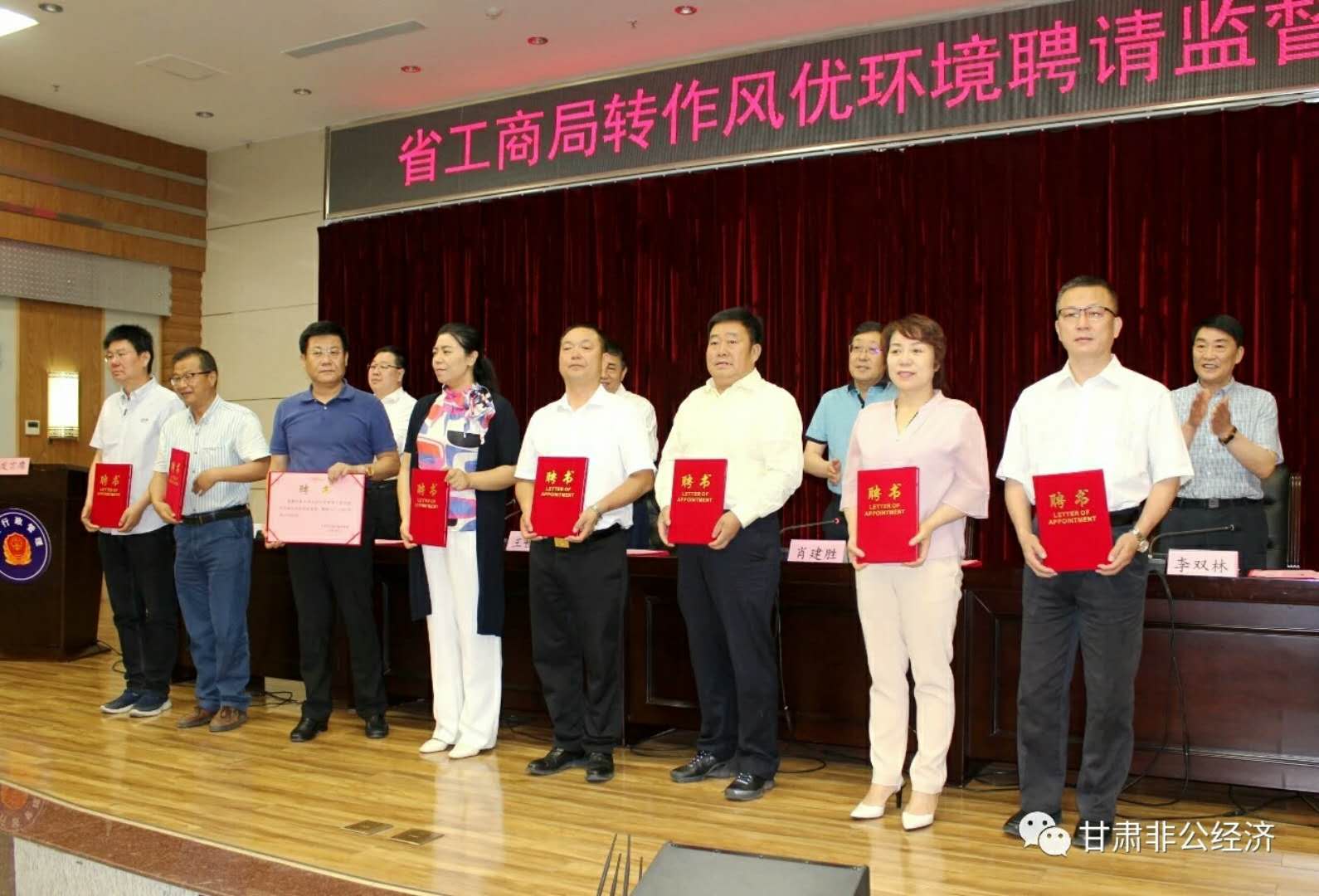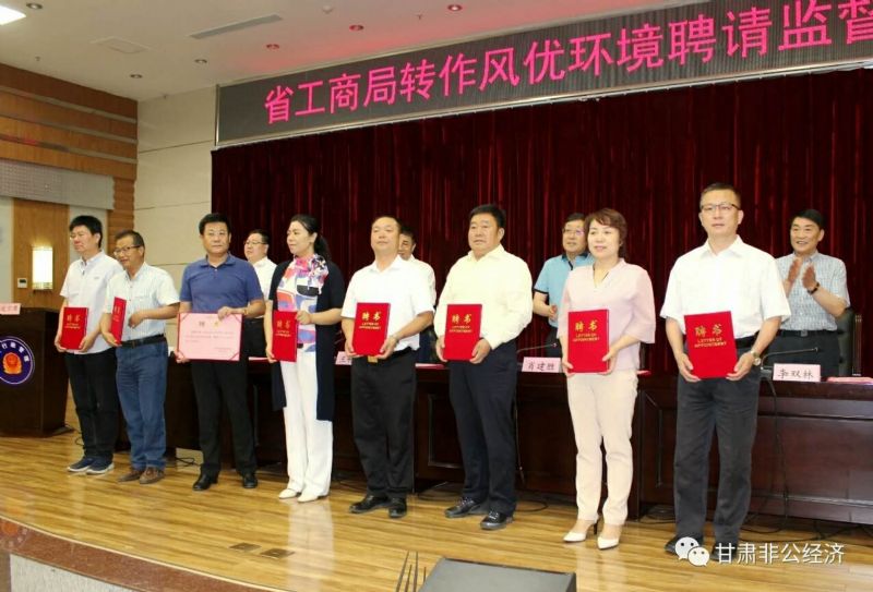 6月14號,甘肅省工商局召開(kāi)了轉作風(fēng)優(yōu)環(huán)境聘請監督員的會(huì )議。為了深入開(kāi)展作風(fēng)建設年活動(dòng),加強對全省工商系統活動(dòng)開(kāi)展情況的監督,作風(fēng)建設年活動(dòng)監督員是工商系統轉變作風(fēng),優(yōu)化發(fā)展環(huán)境的一項有效措施。集聚全省、市、縣市區黨代表、人大代表、政協(xié)委員中的民主黨派、無(wú)黨派人士及優(yōu)秀企業(yè)家代表的的力量開(kāi)展監督工作。會(huì )上共確定了37位監督員 ,他們來(lái)自不同的領(lǐng)域,人員涵蓋層面廣、社會(huì )公認度高、監督能力強,具有廣泛的代表性。