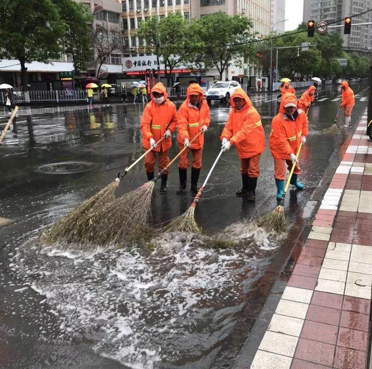 ▲全體出動(dòng)清掃路面積水