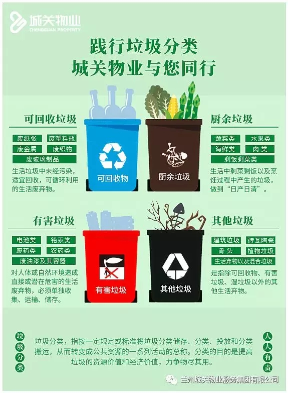 為有效推進(jìn)城關(guān)物業(yè)所轄小區垃圾分類(lèi)工作的有序開(kāi)展,先后在各小區購置新型四色分類(lèi)垃圾桶(包括可回收物、易腐垃圾、有害垃圾和其他垃圾),配備垃圾棚,集中打造生活垃圾分類(lèi)投放點(diǎn),方便業(yè)主更好地分類(lèi)投放。