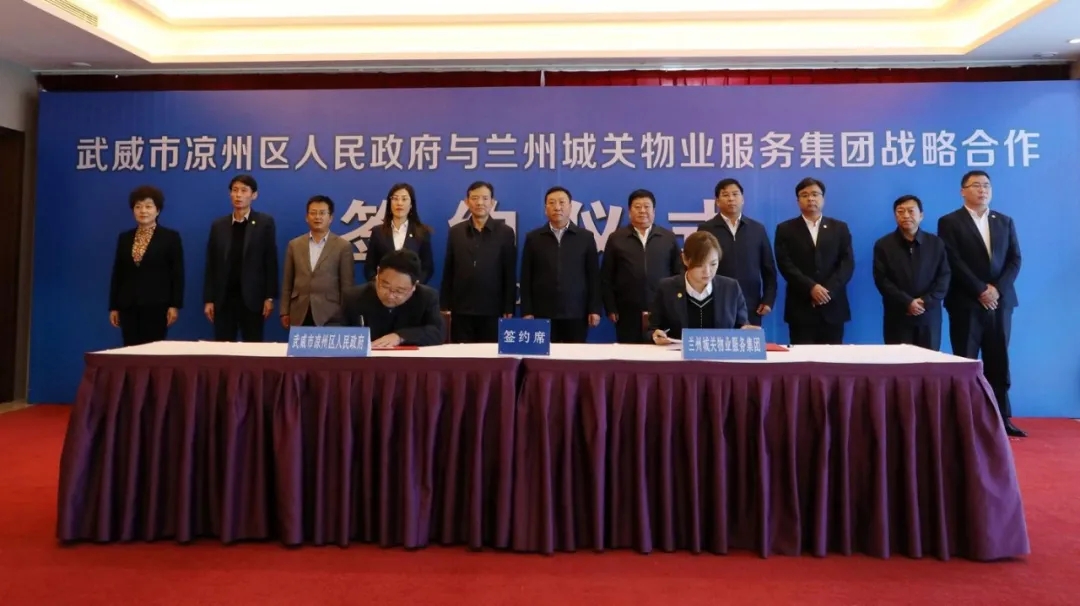 蘭州城關(guān)物業(yè)服務(wù)集團有限公司與武威市涼州區人民政府簽訂戰略合作協(xié)議,武威市委常委、涼州區委書(shū)記鞠毅主持簽約儀式。涼州區委副書(shū)記、區長(cháng)高加志、蘭州城關(guān)物業(yè)服務(wù)集團有限公司黨委書(shū)記、董事長(cháng)楊民召等一行領(lǐng)導出席簽約儀式。今后雙方將共謀發(fā)展,共創(chuàng )未來(lái),為涼州區城市發(fā)展添磚加瓦。