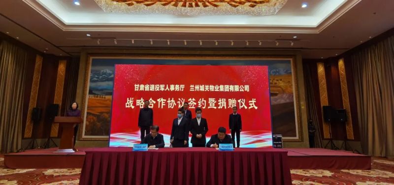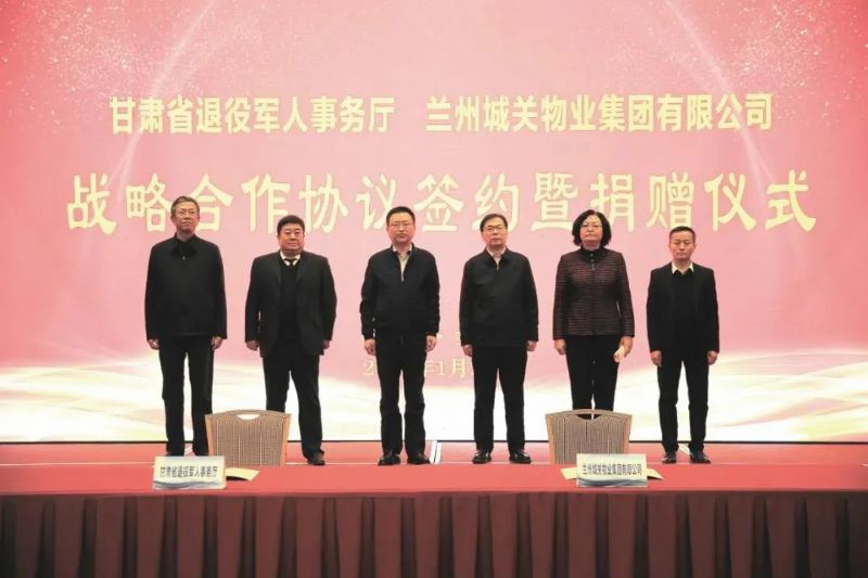 社會(huì )尊崇,愛(ài)滿(mǎn)人間。為深化雙擁共建,關(guān)愛(ài)退役軍人,甘肅省退役軍人事務(wù)廳與蘭州城關(guān)物業(yè)集團戰略合作協(xié)議簽約暨捐贈儀式在省城寧臥莊賓館舉行。