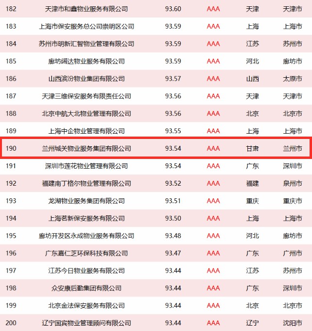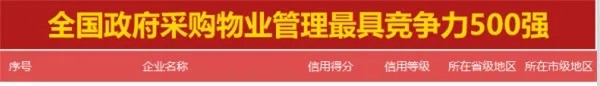 城關(guān)物業(yè)成為甘肅省唯一入選全國政府采購物業(yè)最具競爭力500強企業(yè)