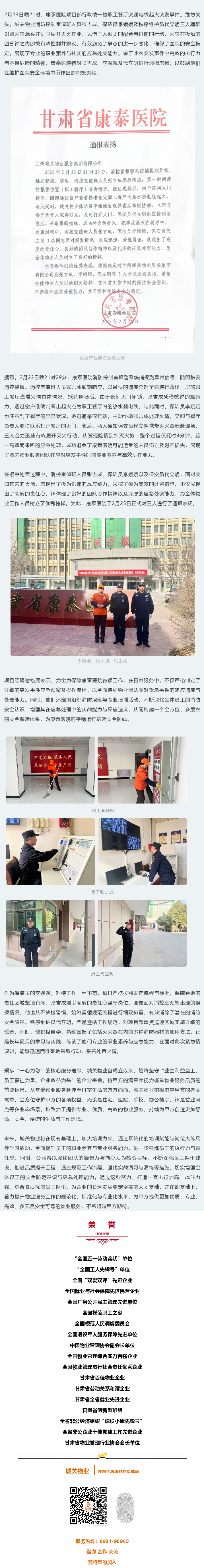 為他們點(diǎn)贊!康泰醫院項目部三名員工合力滅火獲甲方通報表?yè)P